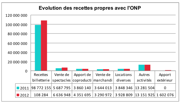 Et plus précisément, l’évolution de l’ONP a été permise grâce à des efforts d’optimisation de leurs ressources qui ont été faits ; concernant les prix, malgré des baisses de subventions. Nous avons pu constater une réelle envie de transmettre les savoirs, par l’ intervention des pouvoirs publics et des mécènes. Les ventes des spectacles en abonnements et par internet sont en hausses depuis 2010. Il est donc indispensable que l’ONP reste sur une dynamique numérique.