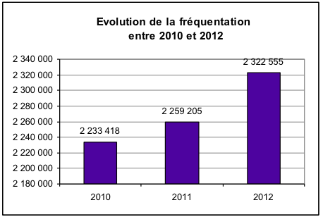 En ce qui concerne l’évolution de la fréquentation des opéras nous pouvons nous appuyer plus généralement , sur l’exemple de l’Opéra National de Paris. Nous pouvons constater que la fréquentation des opéras a augmenté de manière significative en 2012. La fréquentation de l’Opéra National de Paris est très inégale selon les années puisqu’en 2010 sa fréquentation était supérieure à celle de 2011.